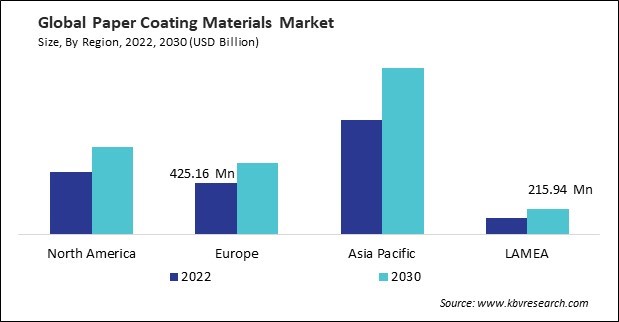 The Asia Pacific region dominated the Global Paper Coating Materials Market by Region in 2022, and would continue to be a dominant market till 2030; thereby, achieving a market value of $1.4 billion by 2030. The North America region is anticipating a CAGR of 4.2% during (2023 - 2030). Additionally, The Europe region would exhibit a CAGR of 4.4% during (2023 - 2030).