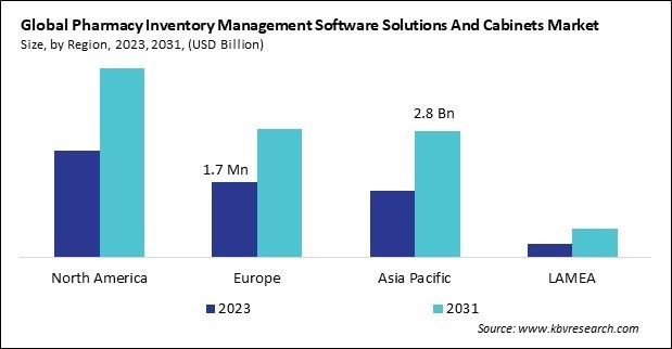 The North America region dominated the Global Pharmacy Inventory Management Software Solutions And Cabinets Market by Region in 2023, and would continue to be a dominant market till 2031; thereby, achieving a market value of $4.2 billion by 2031. The Europe region is experiencing a CAGR of 7% during (2024 - 2031). Additionally, The Asia Pacific region would exhibit CAGR of 8.3% during (2024 - 2031).