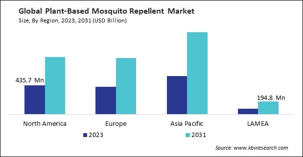 The Asia Pacific region dominated the Global Plant-Based Mosquito Repellent Market by Region in 2023, and would continue to be a dominant market till 2031; thereby, achieving a market value of $195.8 million by 2031. The North America region is experiencing a CAGR of 9.1% during (2024 - 2031). Additionally, The Europe region would exhibit a CAGR of 9.6% during (2024 - 2031).