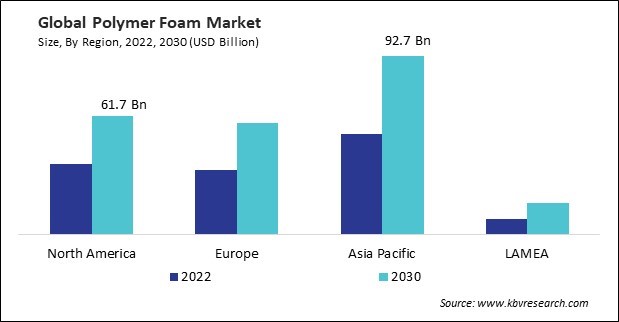 According to a new report, published by KBV research, The Global Polymer Foam Market size is expected to reach $228.8 billion by 2030, rising at a market growth of 7.3% CAGR during the forecast period. In the year 2022, the market attained a volume of 55,371.9 million square meter, experiencing a growth of 6.7% (2019-2022).