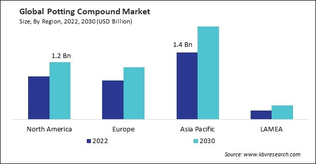 The Asia Pacific region is leading the Global Potting Compound Market by region in 2022, and would continue to be a dominant market till 2030; thereby, achieving a market value of $1.9 billion by 2030. The North America region is experiencing a CAGR of 3.7% during (2023 - 2030). Additionally, The Europe region would exhibit a CAGR of 3.9% during (2023 - 2030).