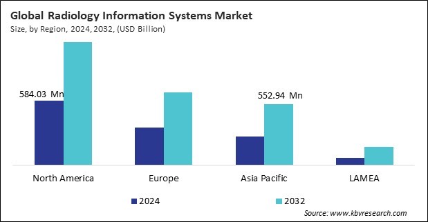The North America region dominated the Global Radiology Information Systems Market by Region in 2024, and would continue to be a dominant market till 2032; thereby, achieving a market value of $1.18 billion by 2032. The Europe region is experiencing a CAGR of 8.9% during (2025 - 2032). Additionally, The Asia Pacific region would exhibit a CAGR of 10.3% during (2025 - 2032).