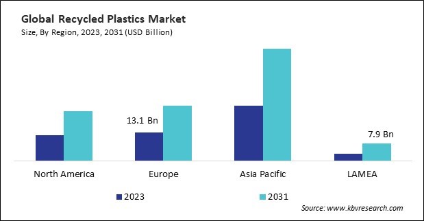 The Asia Pacific region dominated the Global Recycled Plastics Market by Region in 2023, and would continue to be a dominant market till 2031; thereby, achieving a market value of $51 billion by 2031. The Europe region is anticipating a CAGR of 8.6% during (2024 - 2031). Additionally, The North America region would exhibit a CAGR of 8.5% during (2024 - 2031).