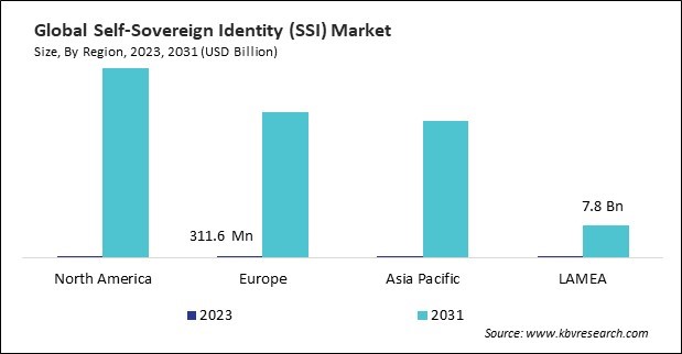 The North America region dominated the Global Self-Sovereign Identity (SSI) Market by Region in 2023, and would continue to be a dominant market till 2031; thereby, achieving a market value of $44.9 billion by 2031. The Europe region is anticipated to grow at a CAGR of 81.3% during (2024 - 2031). Additionally, The Asia Pacific region would witness a CAGR of 83.3% during (2024 - 2031).