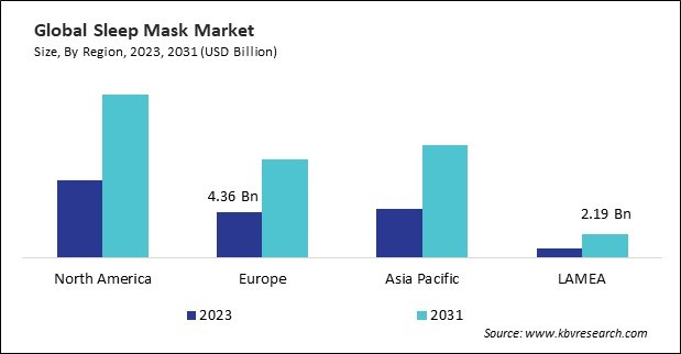 The North America region dominated the Global Sleep Mask Market by Region in 2023; thereby, achieving a market value of $15.42 billion by 2031. The Asia Pacific region exhibits a CAGR of 11.5% during (2024 - 2031). Additionally, The Europe market region register a CAGR of 10.7% during (2024 - 2031).