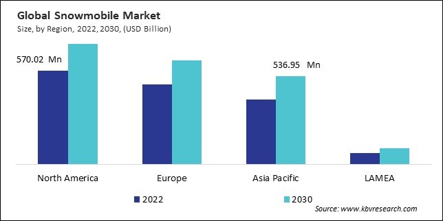 The North America region dominated the Global Snowmobile Market, By Region in 2022, and would continue to be a dominant market till 2030; thereby, achieving a market value of $732.9 million by 2030, growing at a CAGR of 3.3 % during the forecast period. The Europe region would experience a CAGR of 3.5% during (2023 - 2030). Additionally, The Asia Pacific region would showcase a CAGR of 4% during (2023 - 2030).