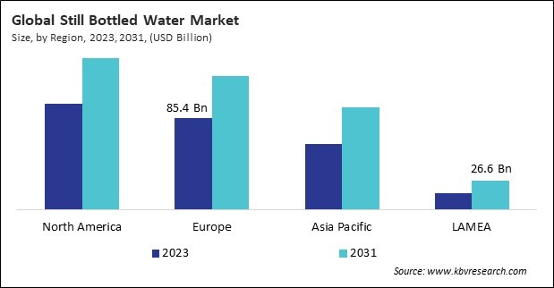 According to a new report, published by KBV research, The Global Still Bottled Water Market size is expected to reach $388.4 billion by 2031, rising at a market growth of 5.3% CAGR during the forecast period. In the year 2023, the market attained a volume of 81,162.12 million units (1 Litre), experiencing a growth of 12.3% (2020-2023).