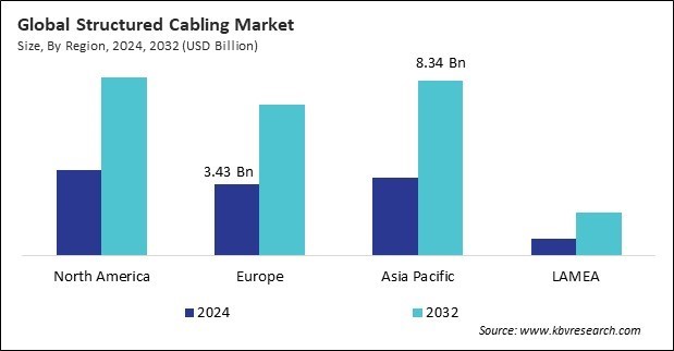The North America region dominated the Global Structured Cabling Market by Region in 2024, and would continue to be a dominant market till 2032; thereby, achieving a market value of $8.5 billion by 2032. The Asia Pacific region is anticipated to grow at a CAGR of 10.9% during (2025 - 2032). Additionally, The Europe region would witness a CAGR of 10% during (2025 - 2032).