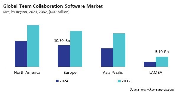The North America region dominated the Global Team Collaboration Software Market by Region in 2024, and would continue to be a dominant market till 2032; thereby, achieving a market value of $20.9 billion by 2032. The Europe region is anticipated to grow at a CAGR of 6.7% during (2025 - 2032). Additionally, The Asia Pacific region would witness a CAGR of 7.9% during (2025 - 2032).