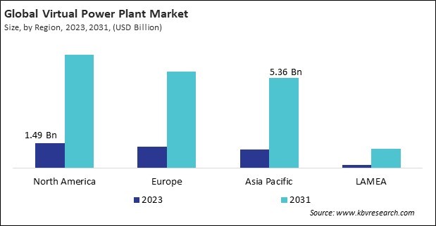 The North America region dominated the Global Virtual Power Plant Market by Region in 2023, and would continue to be a dominant market till 2031; thereby, achieving a market value of $6.7 billion by 2031. The Europe region is anticipated to grow at a CAGR of 21.4% during (2024 - 2031). Additionally, The Asia Pacific region would witness a CAGR of 22.5% during (2024 - 2031).