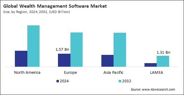 The North America region dominated the Global Wealth Management Software Market by Region in 2024, and would continue to be a dominant market till 2032; thereby, achieving a market value of $5.0 billion by 2032. The Europe region is anticipated to grow at a CAGR of 13.2% during (2025 - 2032). Additionally, The Asia Pacific region would witness a CAGR of 14.4% during (2025 - 2032).