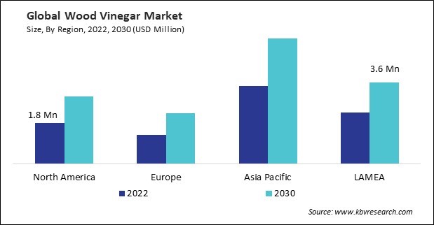The Asia Pacific region dominated the Global Wood Vinegar Market by Region in 2022, and would continue to be a dominant market till 2030; thereby, achieving a market value of $5.6 Million by 2030, growing at a CAGR of 6.2 % during the forecast period. The LAMEA region is showcasing a CAGR of 6% during (2023 - 2030). Additionally, The North America region would experience a CAGR of 6.7% during (2023 - 2030).