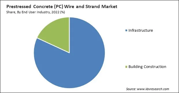 On the basis of end user industry, the market is divided into building construction and infrastructure. In 2022, the building construction segment garnered a significant revenue share in the market. PC wire and strand are commonly used in the construction of high-rise buildings. These structures require materials that can withstand significant vertical and lateral loads. Prestressed concrete creates slender and lightweight structural elements that can support the building's weight while reducing the overall structural mass. The continued growth of the PC wire and strand market in building construction is driven by the need for efficient, sustainable, and durable construction solutions.