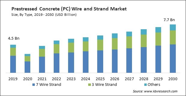 The Global Prestressed Concrete (PC) Wire and Strand Market size is expected to reach $7.7 billion by 2030, rising at a market growth of 5.1% CAGR during the forecast period.