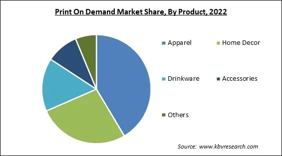 On the basis of product, the market is classified into apparel, home décor, drinkware, accessories, and others. In 2022, the apparel segment dominated the market with maximum revenue share. The rising popularity of personalization and customization is one of the critical aspects driving this segment's expansion. Potential customers for t-shirts with graphic designs include consumers who want to print their designs or have a clear idea of what they want to print. The growth has also considerably impacted print-on-demand demand in the apparel segment of social media and influencer marketing. Influencers frequently collaborate with brands that offer print-on-demand, creating and promoting their designs on social media platforms.