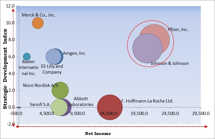 The market research report covers the analysis of key stake holders of the market. Key companies profiled in the report include Abbott Laboratories, Baxter International, Inc., Amgen, Inc., F. Hoffmann-La Roche Ltd., Eli Lilly and Company, Merck & Co., Inc., Johnson & Johnson (Janssen Global Services, LLC), Pfizer, Inc., Novo Nordisk A/S and Sanofi S.A.