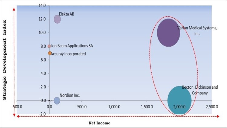 The major strategies followed by the market participants are Product Launches. Based on the Analysis presented in the Cardinal matrix; Varian Medical Systems, Inc. and Becton, Dickinson and Company are the forerunners in the Radiation Oncology Market. Companies such as Elekta AB, Accuray Incorporated and Ion Beam Applications SA are some of the key innovators in Radiation Oncology Market.