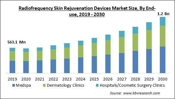 Widespread use of multiple device-based skin rejuvenation treatments is being caused by the rising prevalence of skin-related issues like wrinkles, acne, scars, sun-damaged skin, and hyperpigmentation, which is expected to fuel the growth of the market. Thus, the market will expand when demand for aesthetic appearances and skin diseases rises. The growing inclination for minimally invasive treatments and procedures, technological developments in radiofrequency-based devices, as well as additional health and economic benefits over alternative aesthetic procedures are increasing the demand for RF procedures. Hence, these elements are propelling the expansion of the market.