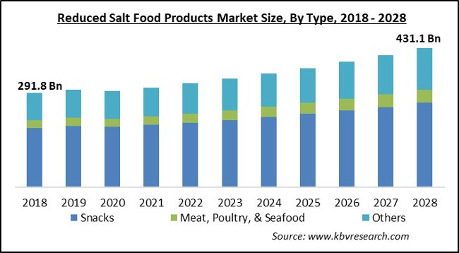 Global Reduced Salt Food Products Market Size, Share & Industry Trends Analysis Report By Type (Snacks, Meat, Poultry, & Seafood and others), By Distribution Channel (Offline and Online), By Regional Outlook and Forecast, 2022 - 2028
