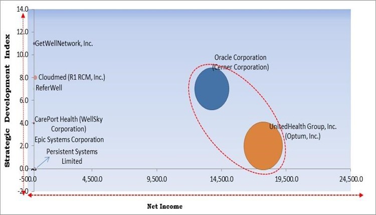 The major strategies followed by the market participants are Partnerships. Based on the Analysis presented in the Cardinal matrix; Oracle Corporation (Cerner Corporation) and UnitedHealth Group, Inc. (Optum, Inc.) are the forerunners in the Referral Management Market. Companies such as GetWellNetwork, Inc., Cloudmed (R1 RCM, Inc.), CarePort Health (WellSky Corporation) are some of the key innovators in Referral Management Market.