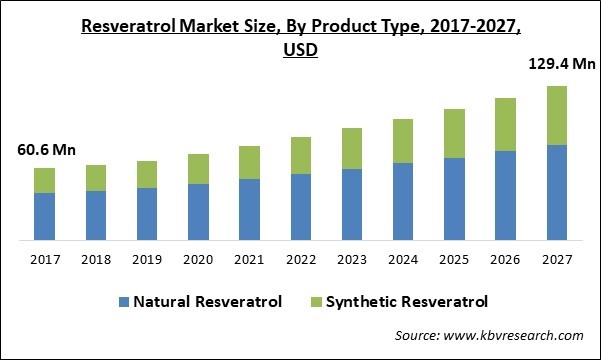 The Global Resveratrol Market size is expected to reach $129.37 Million by 2027, rising at a market growth of 8.4% CAGR during the forecast period.
