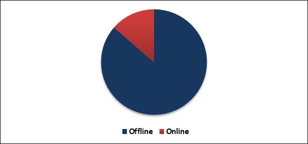 The largest market share was held by the offline distribution channel.