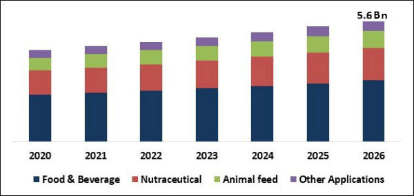 Based on Application, the market is segmented into Food & Beverage, Nutraceutical, Animal feed and Other Applications. Based on Distribution Channel, the market is segmented into Offline and Online. Based on Regions, the market is segmented into North America, Europe, Asia Pacific, and Latin America, Middle East & Africa.