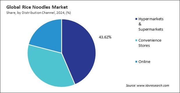 Based on application, the market is segmented into household and restaurant. The household segment acquired 28% revenue share in the market in 2024. Consumers are incorporating rice noodles into their diets due to their gluten-free properties and versatility in meal preparation. The availability of a wide range of packaged rice noodle products in supermarkets, online platforms, and convenience stores has made it easier for individuals and families to prepare Asian-inspired dishes at home.