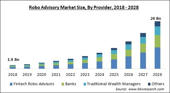 The Global Robo Advisory Market size is expected to reach $24 billion by 2028, rising at a market growth of 29.9% CAGR during the forecast period.