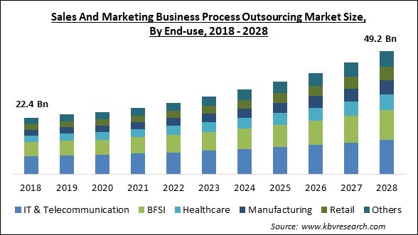 The Global Sales And Marketing Business Process Outsourcing Market size is expected to reach $49.2 billion by 2028, rising at a market growth of 9.5% CAGR during the forecast period.