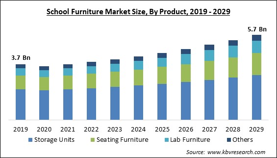 The Global School Furniture Market size is expected to reach $5.7 billion by 2029, rising at a market growth of 5.8% CAGR during the forecast period.