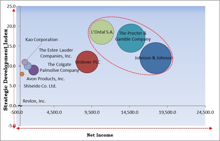 | Companies Included | The Colgate Palmolive Company, The Procter & Gamble Company (P&G), Johnson & Johnson, Unilever PLC, The Estee Lauder Companies, Inc., Shiseido Company Limited, Kao Corporation, Avon Products, Inc. (Natura & Co Holding SA), Revlon, Inc. (MacAndrews & Forbes), L'Oréal S.A. |