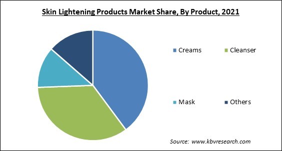 Based on Product, the market is segmented into Creams, Cleanser, Mask, and Others. The cleanser segment witnessed a significant revenue share in the skin lightening products market in 2021. Because of its number of advantages such as lightening discoloration, reducing pigmentation, and removing blemishes, it is expected to acquire popularity among consumers.
