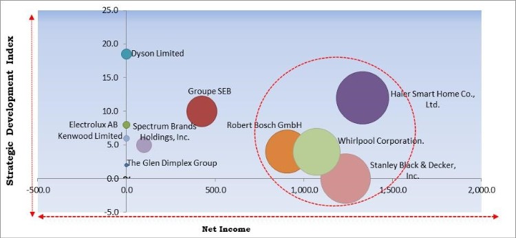 Haier Smart Home Co., Ltd. (Haier Group Corporation) (Candy Hoover Group Srl), Dyson Limited, The Glen Dimplex Group (Morphy Richards), Groupe SEB, Kenwood Limited (De’ Longhi Group), Robert Bosch GmbH, Spectrum Brands Holdings, Inc. (Russell Hobbs), Stanley Black & Decker, Inc., Electrolux AB, and Whirlpool Corporation.