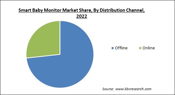 Based on the distribution channel, the market is divided into offline and online. In 2022, the offline distribution channel segment held the highest revenue share in the market. Major distributors of smart infant monitor products include specialty stores, supermarkets and hypermarkets, and pharmacies. In addition to department and retail stores, these products are also sold in specialty stores. These channels contribute significantly to the overall sales.