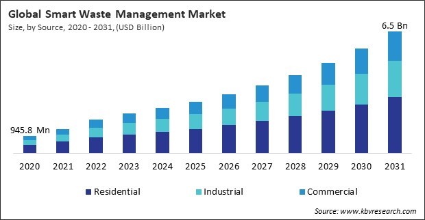 The Global Smart Waste Management Market size is expected to reach $6.5 billion by 2031, rising at a market growth of 15.3% CAGR during the forecast period.