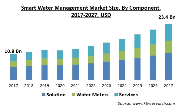 The Global Smart Water Management Market size is expected to reach $23.46 billion by 2027, rising at a market growth of 10.4% CAGR during the forecast period.