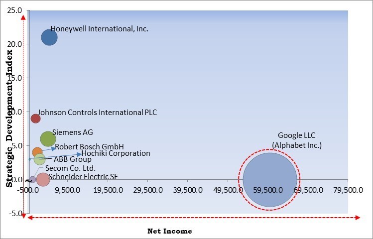 Based on the Analysis presented in the KBV Cardinal matrix; Google LLC (Alphabet Inc.) is the major forerunner in the Market. Companies such as Honeywell International, Inc., Johnson Controls International PLC and Siemens AG are some of the key innovators in the Market. In March, 2023, Honeywell International, Inc. released NOTIFIER INSPIRE, a fire alarm system with UL-approved self-testing smoke detectors. The launched product would be created to create a safer building environment by increasing facility managers' awareness of system needs while equipping service providers with digital self-testing tools that streamline maintenance and help regulatory compliance and system uptime.