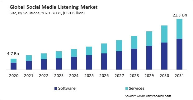 The Global Social Media Listening Market size is expected to reach $21.3 billion by 2031, rising at a market growth of 13.7% CAGR during the forecast period.