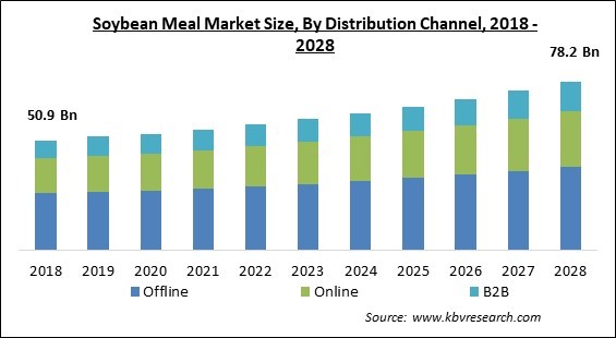 Based on distribution channel, the soybean meal market is segmented into Offline, B2B, and Online. In 2021, the offline segment had the largest revenue share in the market. This occurs as a result of the increased availability of food and beverage products at stores, which has resulted in a growth in the total amount of shelf space that is now accessible for the marketing of various products. In addition, many companies employ salesmen who are able to provide suggestions on the kinds of foods that may appeal to certain customers. It's possible that conventional buying habits and the price differential between neighboring retail businesses and other wholesale marketplaces are to blame for the expansion of this particular market segment.