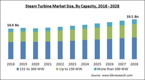 The 151 to 300 MW market is generating high revenue in the Global Steam Turbine Market by Capacity in 2021, thereby, achieving a market value of $10.7 billion by 2028.