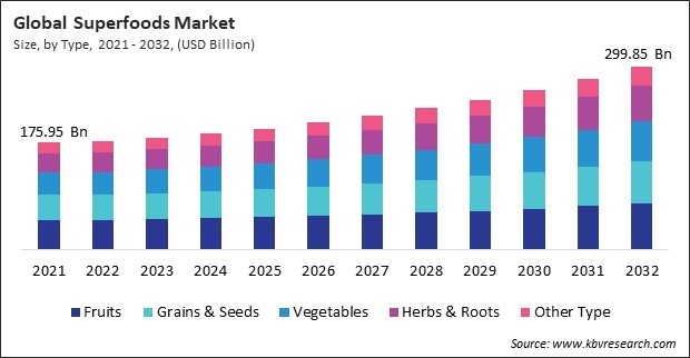 The Global Superfoods Market size is expected to reach $299.85 billion by 2032, rising at a market growth of 6.1% CAGR during the forecast period.