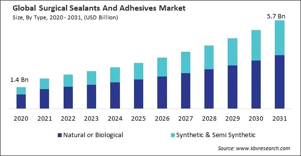 The Global Surgical Sealants And Adhesives Market size is expected to reach $5.7 billion by 2031, rising at a market growth of 11.3% CAGR during the forecast period.