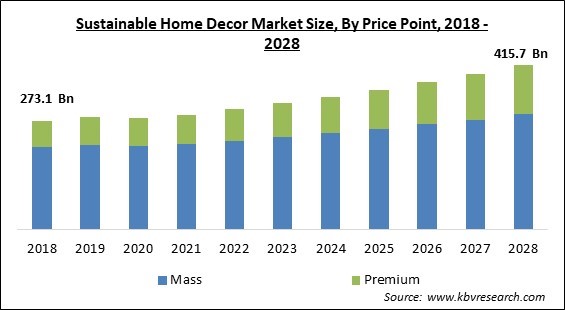 The Global Sustainable Home Decor Market size is expected to reach $415.7 billion by 2028, rising at a market growth of 5.4% CAGR during the forecast period.