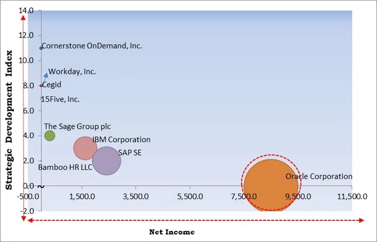 Based on the Analysis presented in the KBV Cardinal matrix; Oracle Corporation is the forerunner in the Market. Companies such as SAP SE, IBM Corporation, and The Sage Group plc are some of the key innovators in the Market. In December, 2019, The Sage Group plc completed the acquisition of CakeHR to develop Sage Business Cloud to boost its native cloud services for small businesses and enhance its SaaS vision.