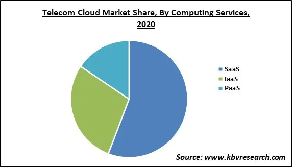 Based on the computing services, the telecom cloud market is fragmented into SaaS, PaaS and IaaS. The SaaS segment dominated the telecom cloud segment with the largest revenue share in 2020. Network maintenance, network device monitoring, monthly status reporting, upgrade/patching deployment, and user management are all examples of these services, which would attract more customers in the forecast years.