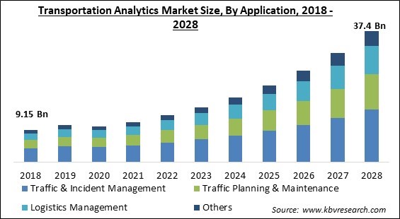 The Global Transportation Analytics Market size is expected to reach $37.4 billion by 2028, rising at a market growth of 18.7% CAGR during the forecast period.