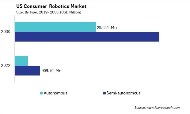 The consumer robotics market in the United States is experiencing a remarkable surge in the popularity of autonomous robots. These robots, equipped with advanced sensors, artificial intelligence algorithms, and sophisticated navigation systems, are revolutionizing daily life for U.S. consumers. Advancements in technology have led to the development of cost-effective components, making it feasible for manufacturers to produce consumer-friendly robots at more reasonable price points. As a result, Americans are now more inclined to invest in these robots to simplify tasks and enhance convenience in their homes.