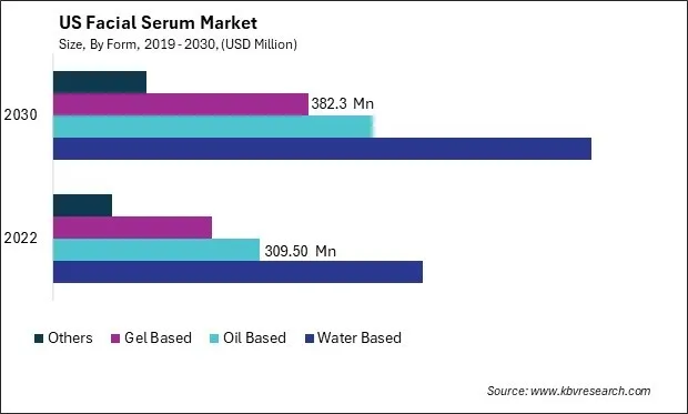 According to the International Trade Administration, in 2019, the U.S. experienced a steady annual growth of 2 % in its exports, culminating in a total of $15.02 billion within the cosmetics industry. As the facial serum market continues to thrive, it adds a substantial dimension to the overall growth and prosperity of the U.S. cosmetics industry. Thus, the demand for gel-based facial serums in the United States reflects a shift towards lightweight and non-greasy skincare options.