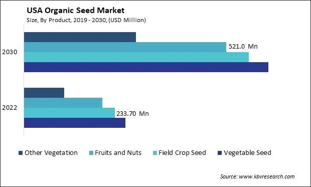 The USA Organic Seed Market size is expected to reach $2 billion by 2030, rising at a market growth of 12.4% CAGR during the forecast period. In the year 2022, the market attained a volume of 123.5 million units, experiencing a growth of 12.2% (2019-2022).
